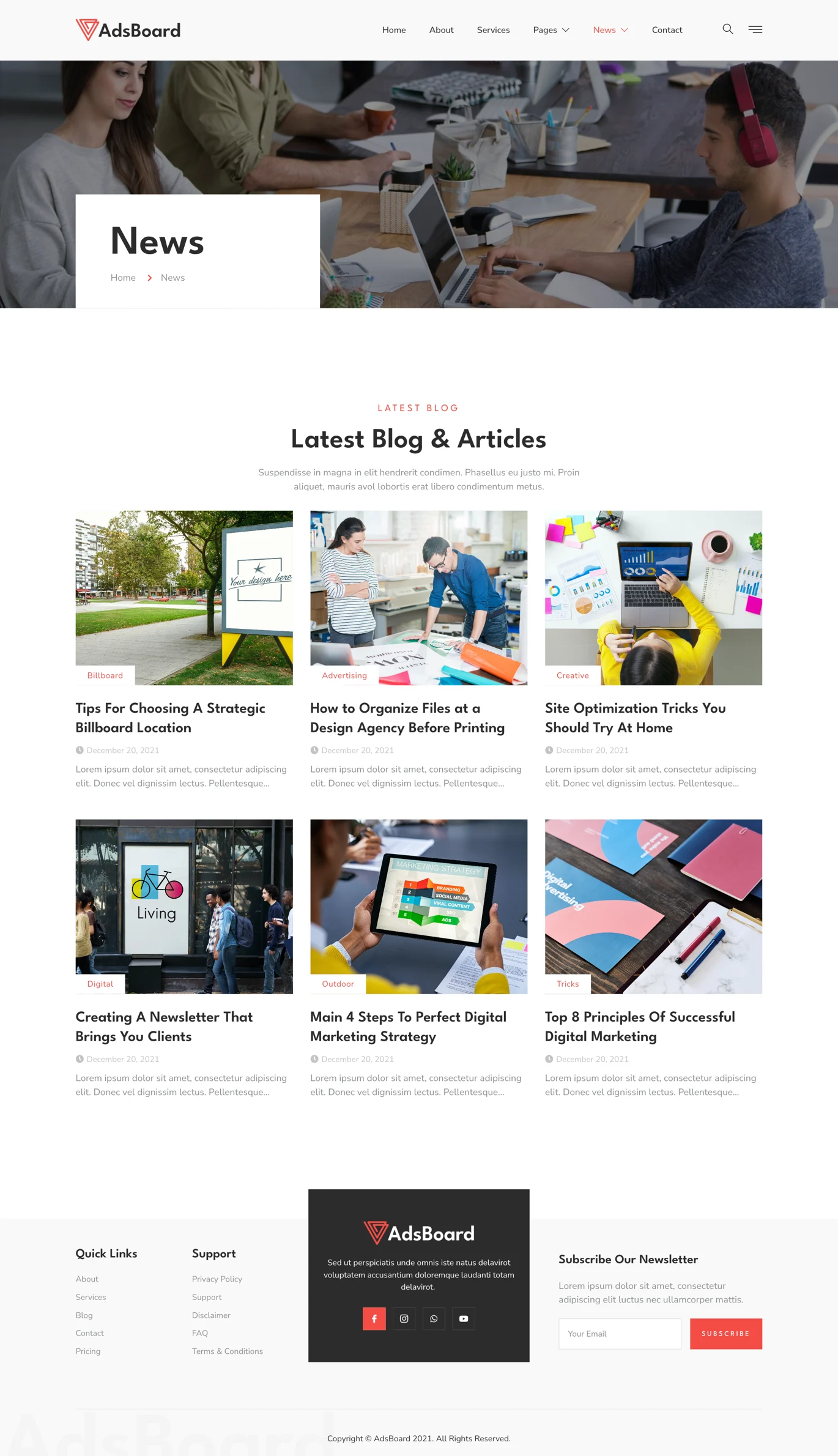 AdsBoard is a modern and clean Elementor Template Kit designed for Billboard & Outdoor Advertising Agencies, Mall Advertising, Media Advertising, and other related businesses. It features a 100% responsive layout, is retina-ready, and is easy to customize without coding using Elementor’s drag & drop builder.