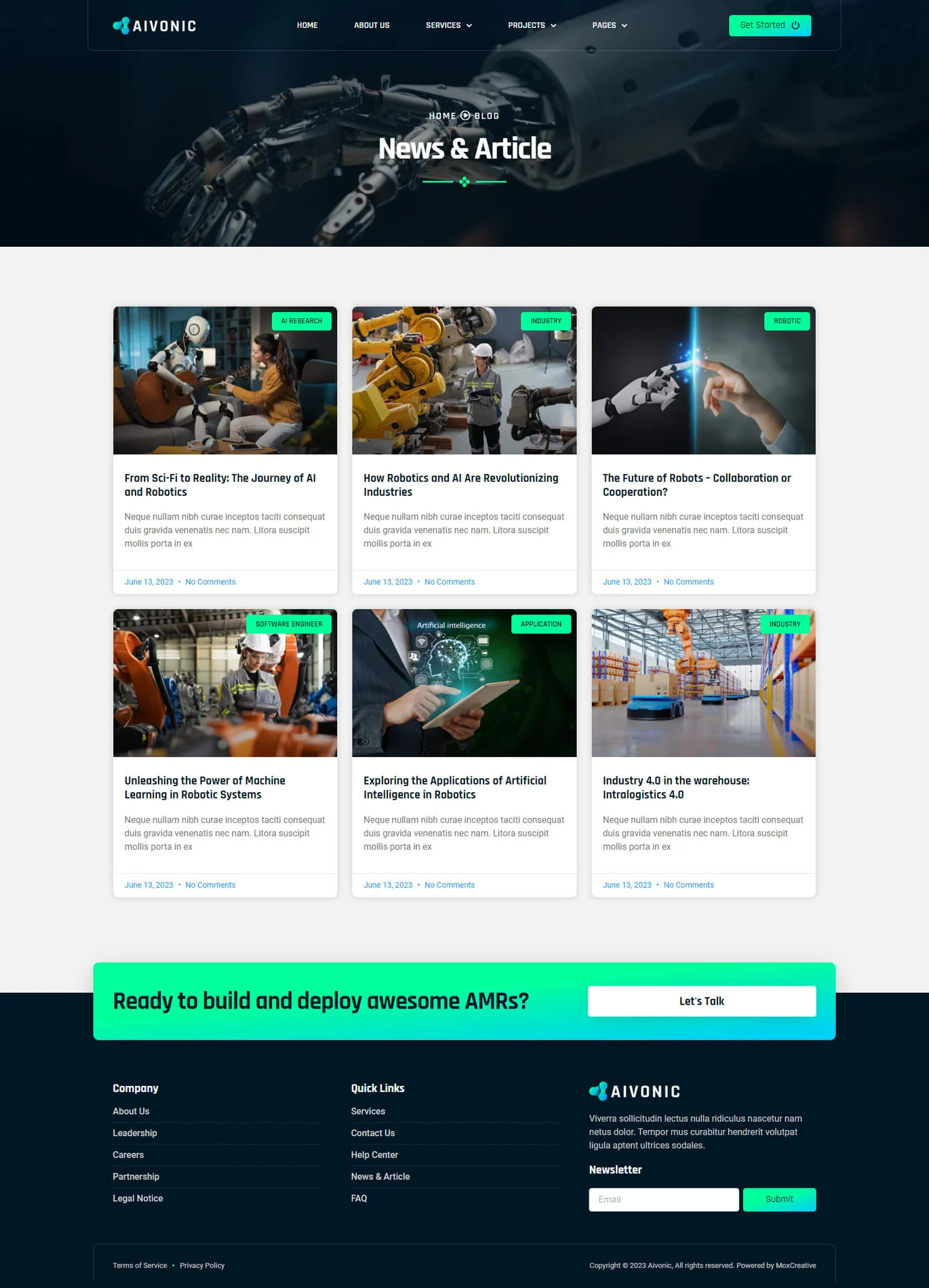 ✔ Services Page – Display AI & robotics solutions offered