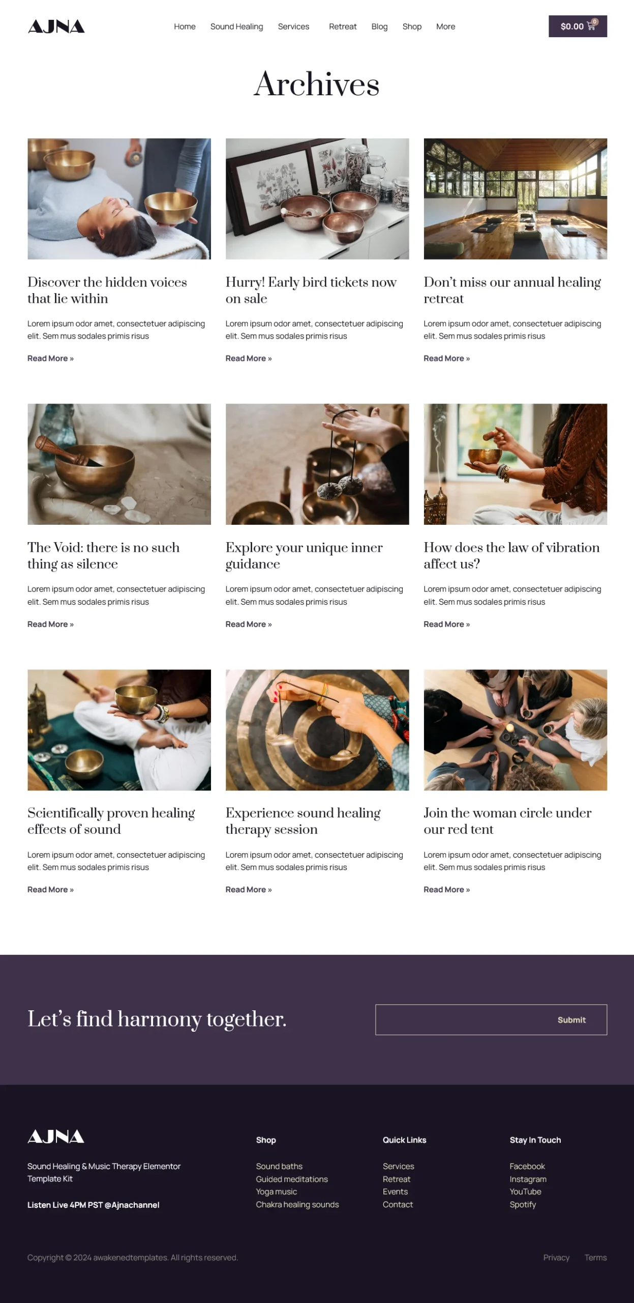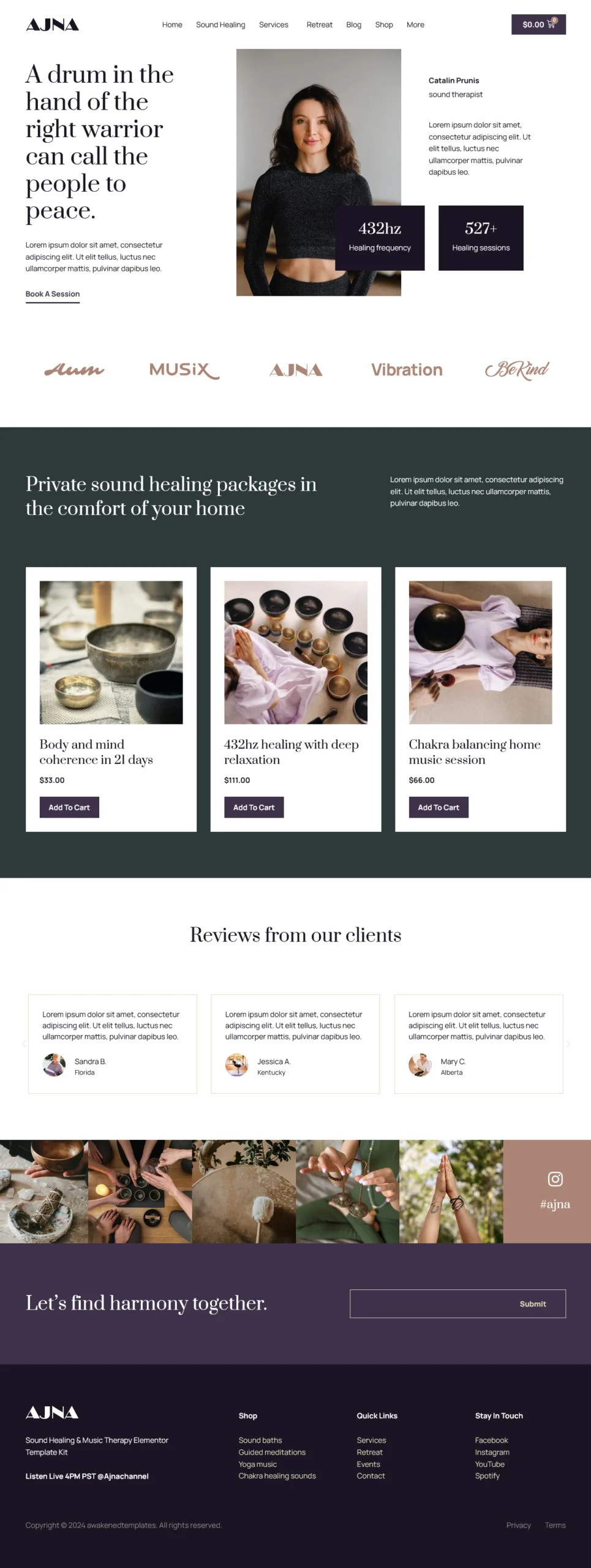 This fully responsive template kit ensures your website looks stunning on all devices while offering a seamless user experience. Whether youβre selling services, workshops, events, or wellness products like guided meditations, books, and sound healing tracks, Ajna is the perfect choice to showcase your offerings.