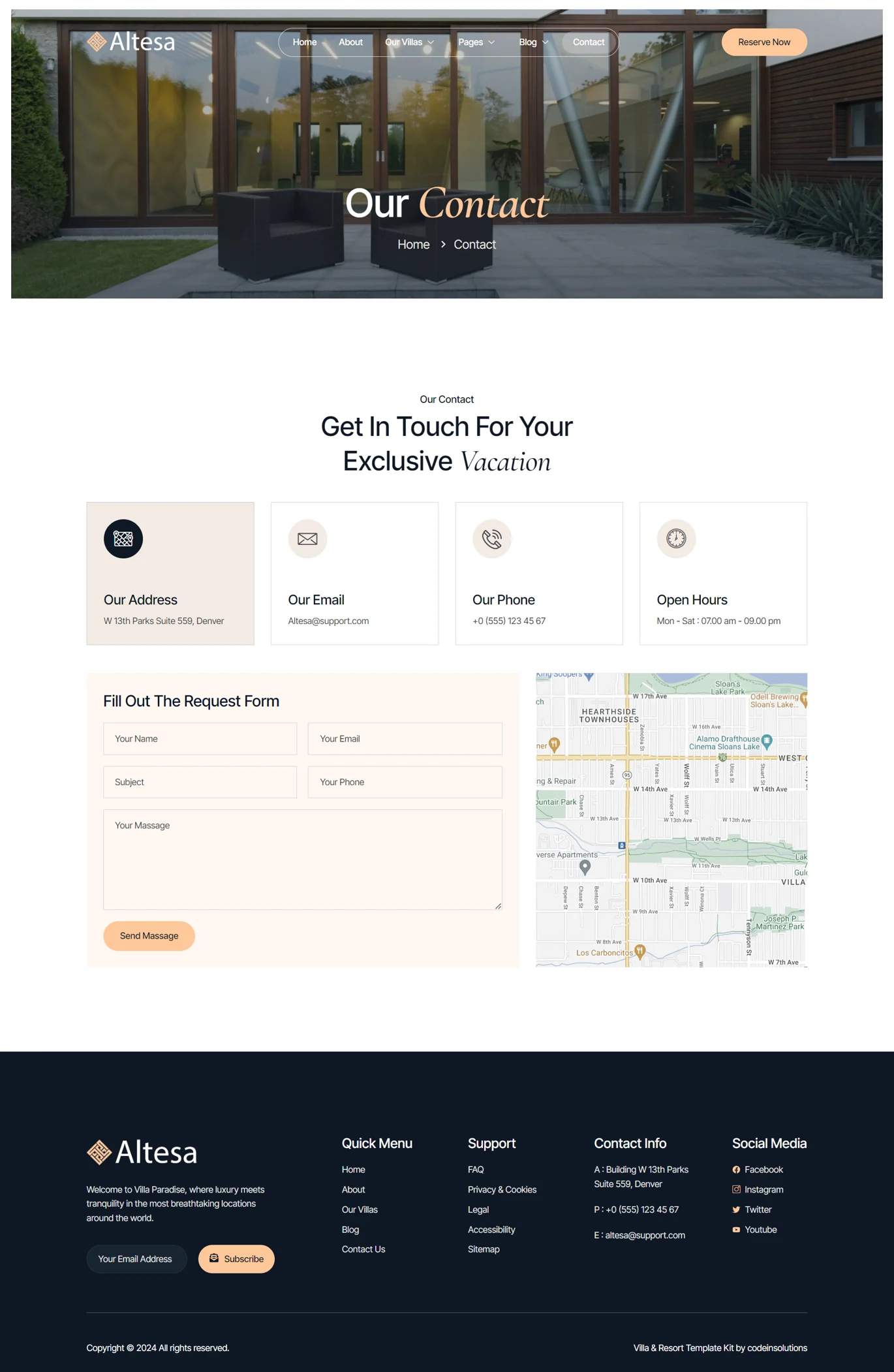 Altesa is a stunning Elementor Template Kit designed to create elegant, modern, and fully responsive websites for villas, hotels, resorts, guest houses, vacation rentals, and luxury stays. With a sleek and sophisticated design, Altesa ensures an exceptional online presence to attract guests and elevate your hospitality business.