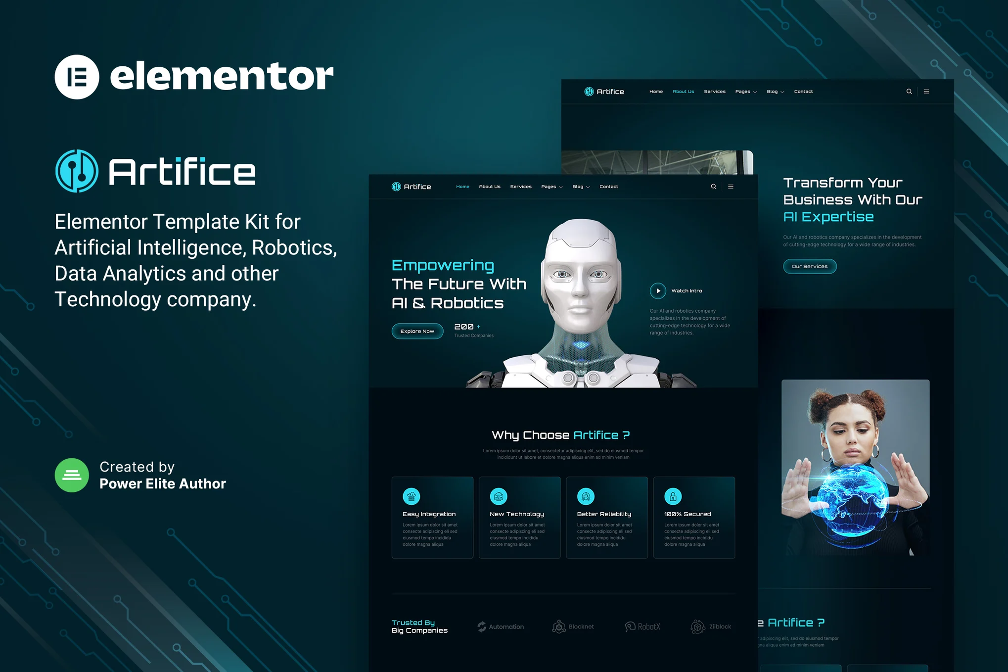 Artifice is a modern and clean Elementor Template Kit designed for AI and Robotics businesses. Whether you’re building AI solutions, robotics products, or technology-driven innovations, this easy-to-use and customizable template kit is perfect for you.