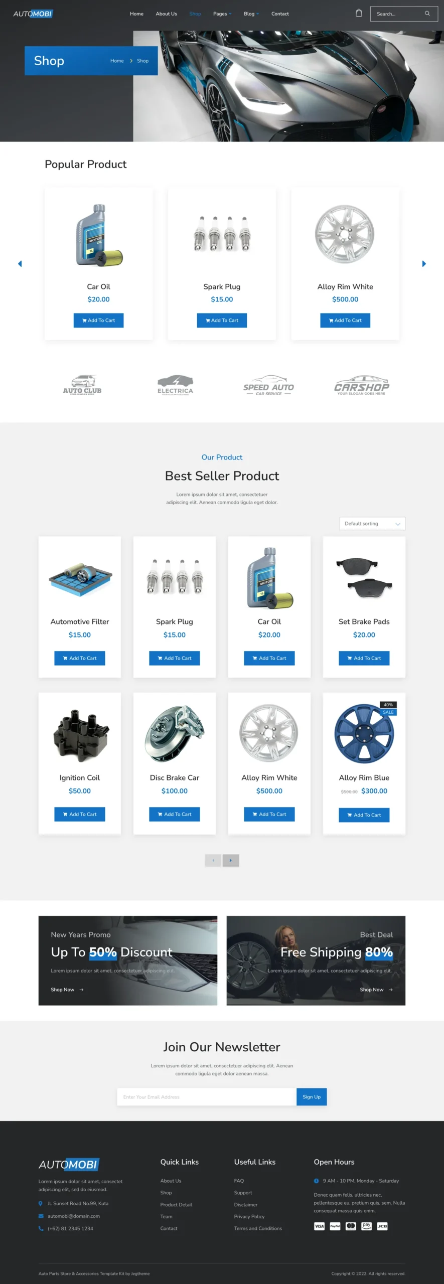 Automobi is a modern, clean, and professional Elementor Template Kit, perfect for creating a WordPress-based auto spare parts shop, car accessories store, and automotive-related businesses.