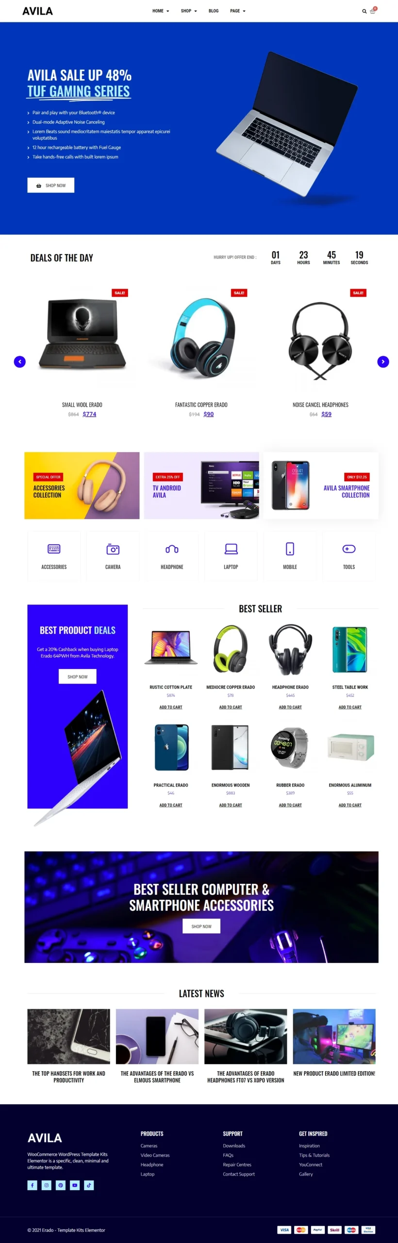 Avila is a modern, stylish, and high-performance Elementor Template Kit designed specifically for electronics stores, gadget shops, and online tech retailers. With 12+ professionally designed templates, Avila helps you create an engaging and conversion-focused WooCommerce store β no coding required!